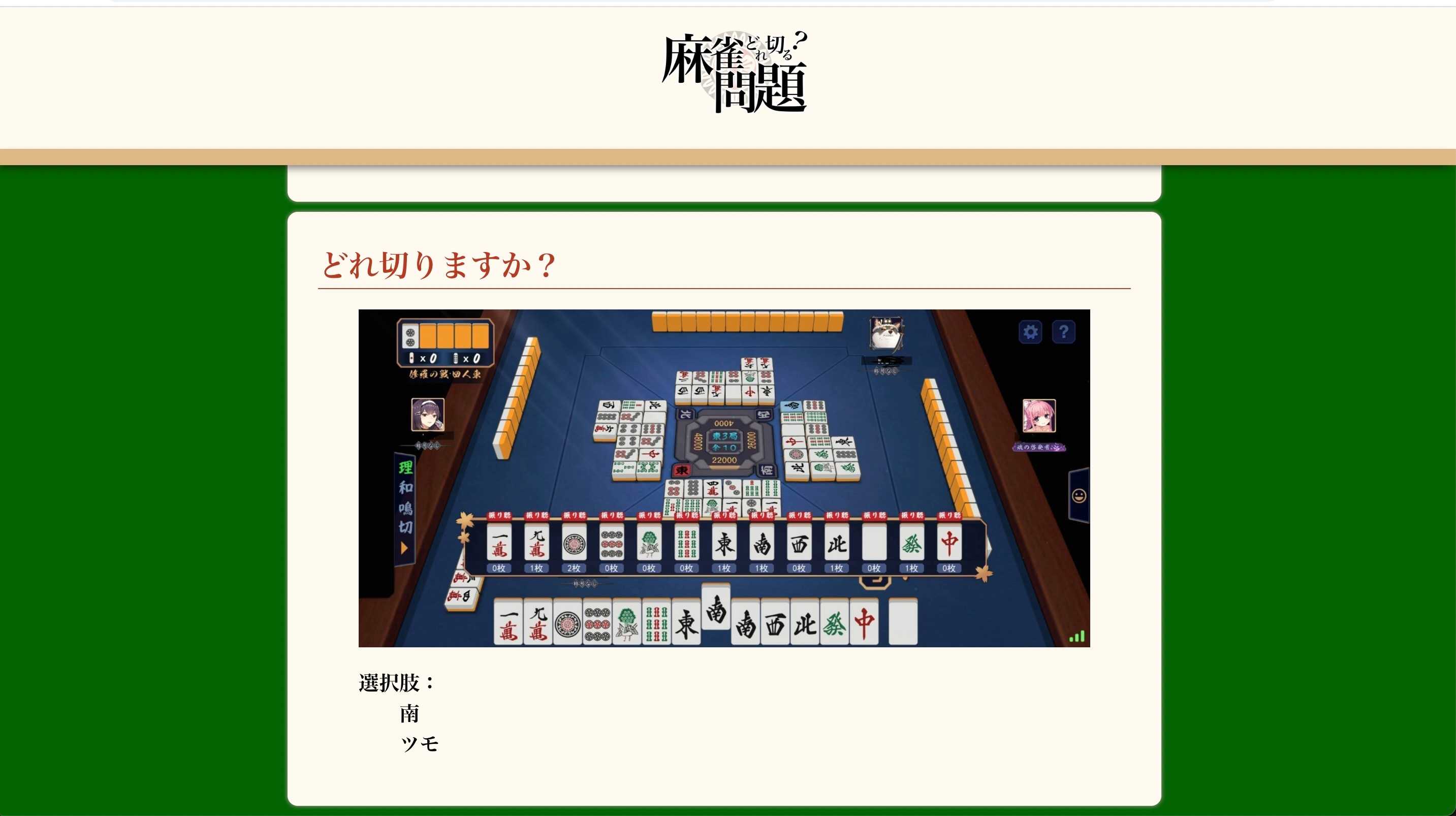 麻雀どこ切る問題1 麻雀どこ切る問題2 麻雀どこ切る問題3